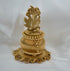 This antique kempstone kumkum box features a traditional gold design with a floral pattern and a premium matte finish, making it an ideal gift for traditional celebrations.